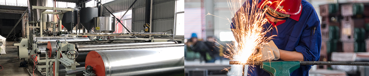 本公司涉足土工复合材料行业已达二十年之久的历史,由起初的钢塑格栅钢塑带生产线到玻塑带生产线,以及加筋带生产线;由煤矿支护用的假顶网PVC双抗钢塑带生产线加强型PVC假顶用的宽体钢塑带生产线,还有国外专利机场跑边用的玻纤加筋带设备;由PP格栅用的PP拉伸带设备到PET格栅用的双头PET拉伸带设备,还有打包带设备远销非洲肯尼亚;由加强型PET土工格室片材设备到国内幅宽大的PET平膜拉丝机组用于PET防草布及石笼网用;由PA、PET的水土保护毯设备到M网及麦克网生产线等,还有盲沟管材片材,养鸡设备配套产品以及为之服务的破碎清洗及造粒机组。