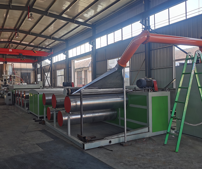 塑料平膜拉丝机组是在引进、吸收国外先进技术的基础上,采用微机控制、变频调速及可控硅直流调速等先进技术研制而成的。主要元器件采用国外优质产品;在挤出机螺杆料筒上加大长径比,加大混炼段,并采用优质钢材特殊加工而成;特别对拉丝机组换网系统,采用了国外先进的自动带式换网结构;烘板改成了国外先进的拉伸热风箱;从而使该机组的主要技术指标接近国际先进水平,具有速度快、产量高、能耗低、丝筒成形质量好等优点,整套机组制造工艺精良、结构紧凑、运行平稳、控制灵敏、造型美观、操作方便、安全可靠。 本机组适用范围广,可适用于聚丙烯、高密度聚乙烯等各种扁丝的成型加工。